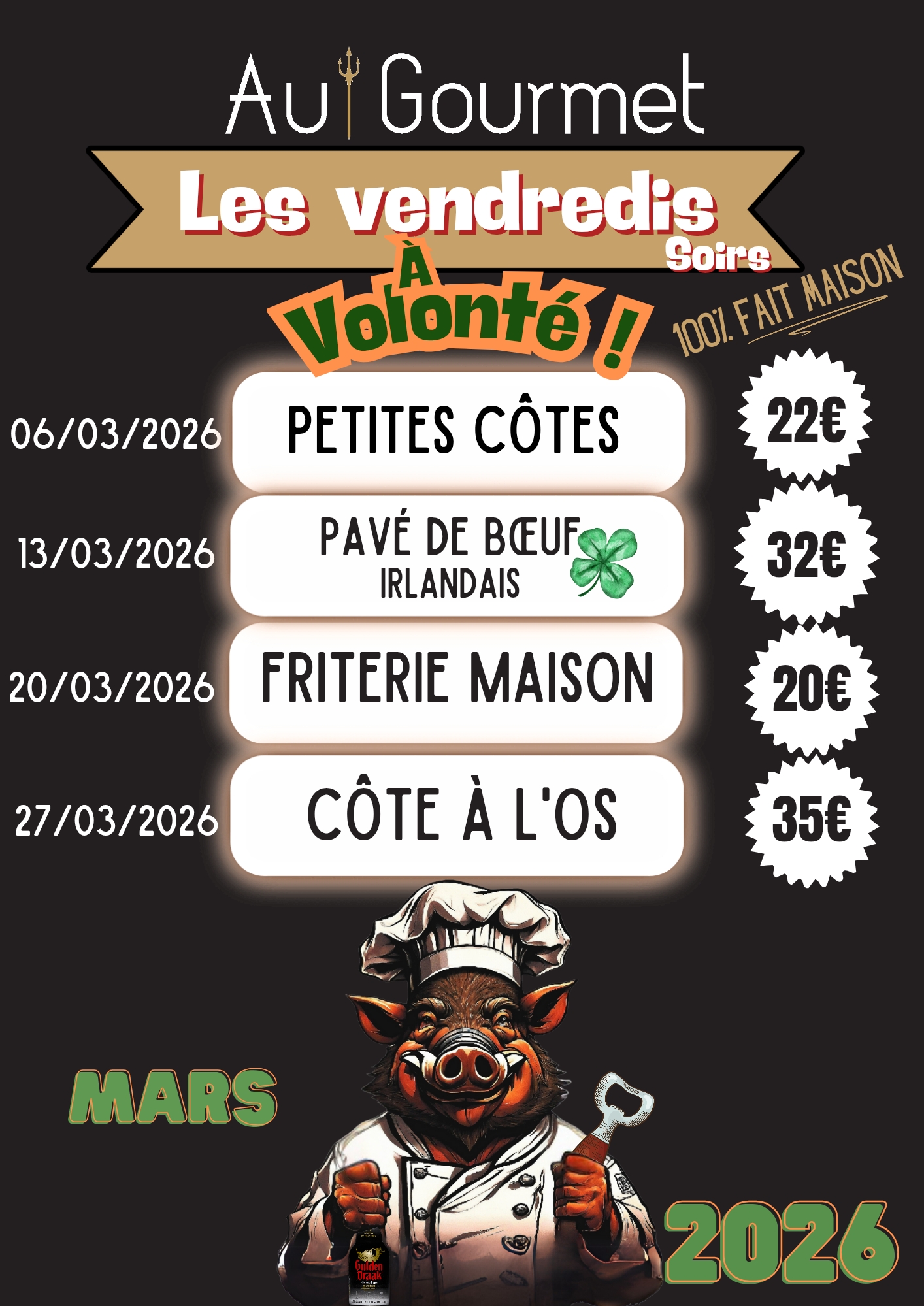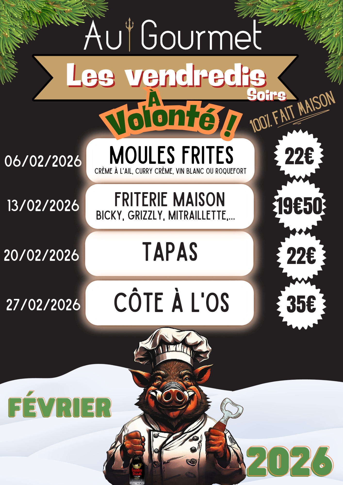 Tous les vendredis soirs, remplis-toi la panse avec nos moules frites à volonté ! CHAQUE SEMAINE UN MENU À VOLONTÉ...